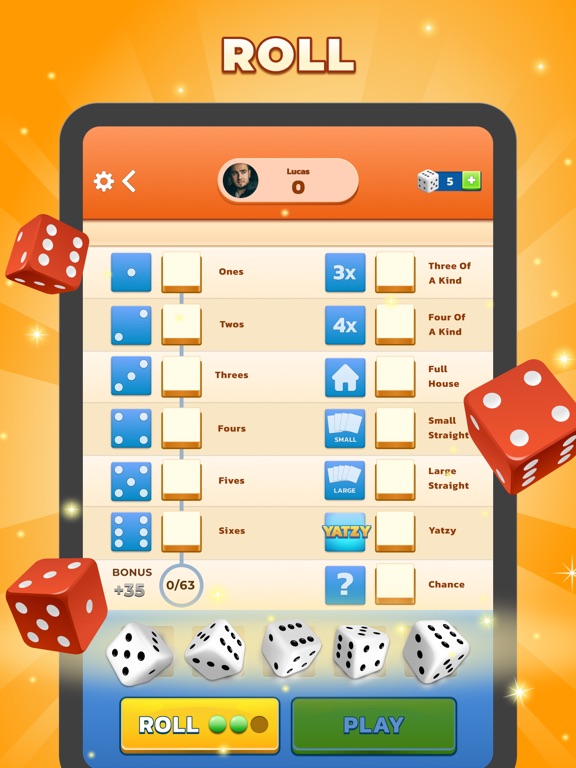Looking for a free online dice game to play alone or with your family and friends? Whether you call it Yatze, Yatzi, Yatzee, or Yahtzee, this Yatzy app is the best classic dice game for testing your luck and strategy skills. Roll the dice now to see if you can score BIG with a lucky Yatzy!
